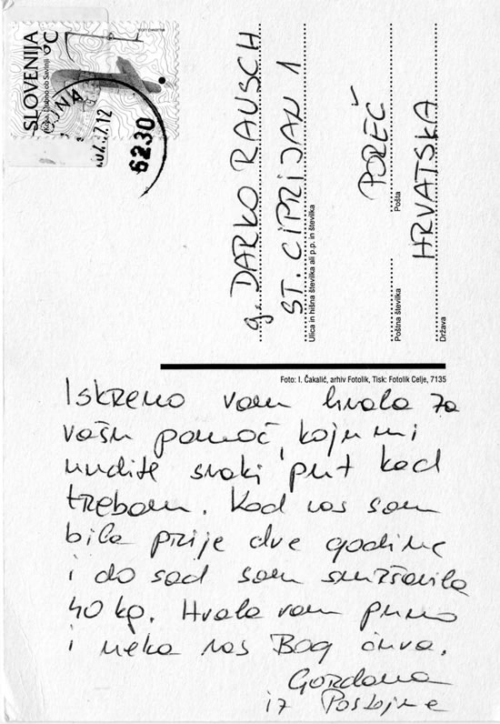 Merci bien pour l'aide qui vous me donne chaque fois que j’en besoin. J’étais chez vous il y a deux ans. Jusqu’à maintenant j’ai maigri 40 kg. Merci beaucoup et que Dieu soit avec vous. Gordana de Postojna.