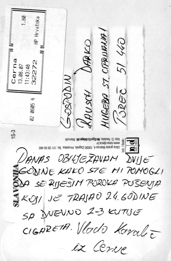 Auourd’hui je fête deux ans depuis quand vous m’avez aidé de me délivrer du vice de fumer qui avait duré bien 24 ans avec 2-3 paquettes de cigarettes chaque jour.Vlado Koralič de Cerna